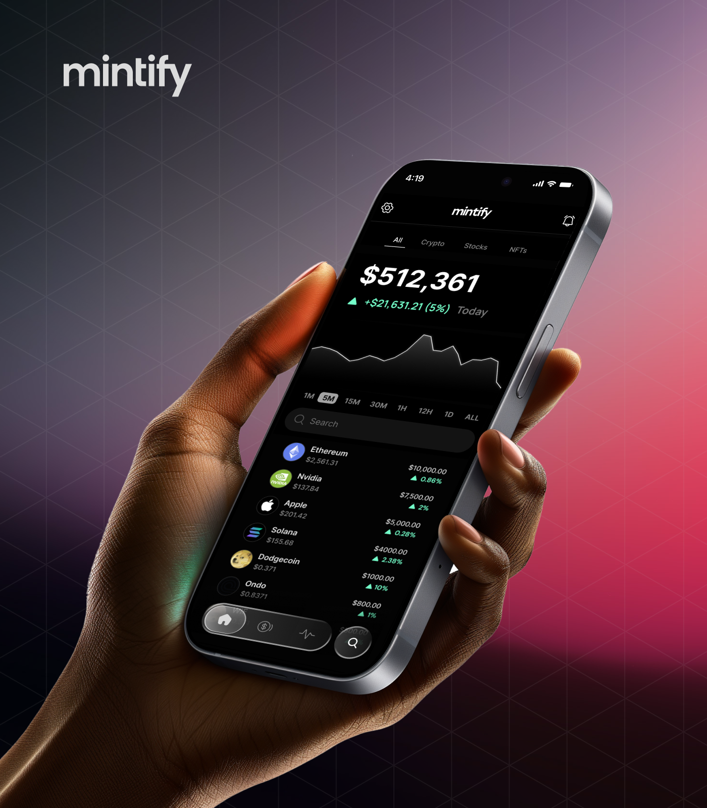 Mobile trading apps fail in one of two ways: they oversimplify until they're useless to experienced traders, or they port the desktop experience directly and overwhelm everyone else. Mintify needed to thread this needle — a single app serving casual retail investors, active NFT collectors, and professional multi-chain traders, all without context-switching or feature gating.