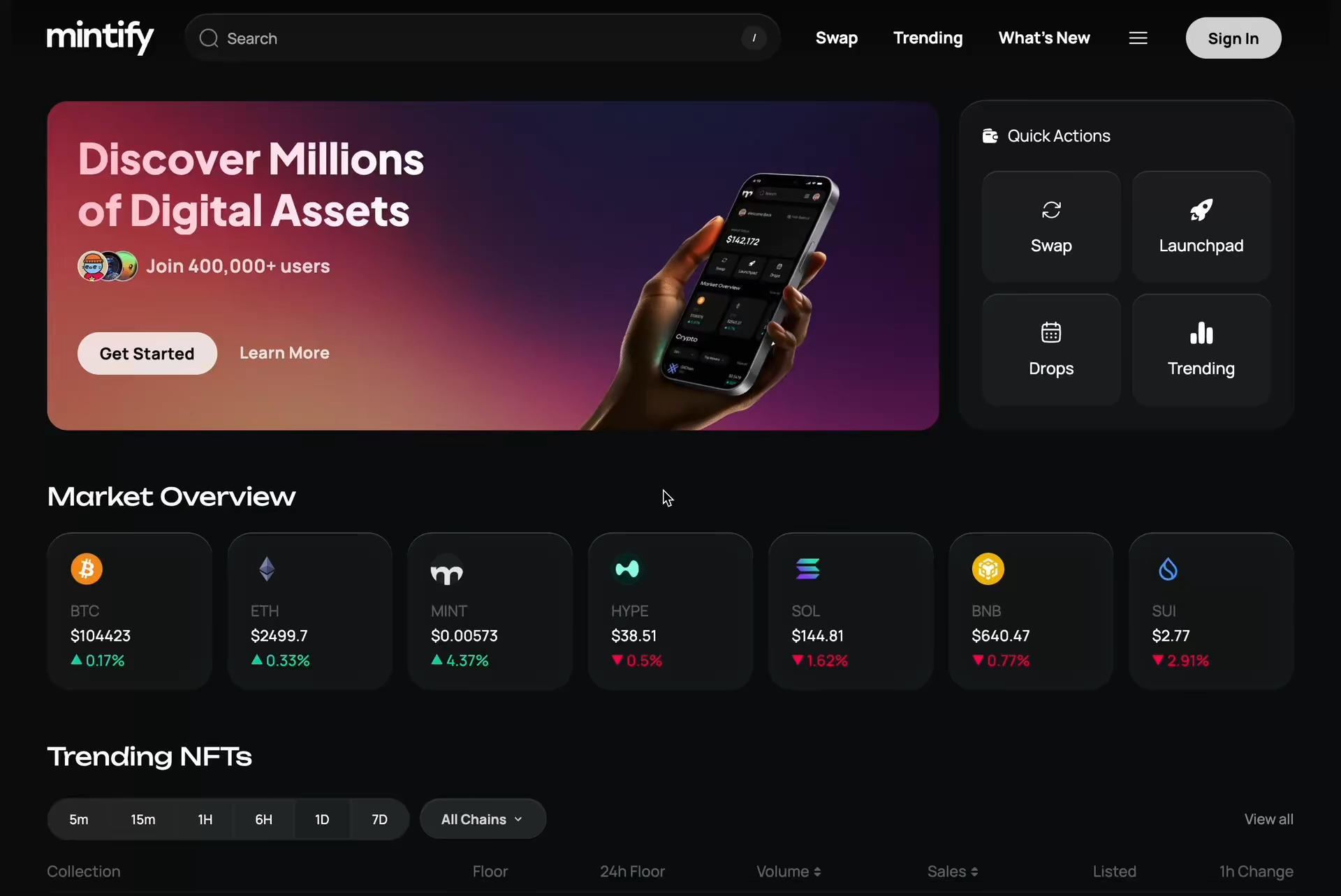 The NFT market was fragmented: traders bounced between a half-dozen tabs — marketplaces for buying, Twitter for alpha, separate analytics tools for data. Most platforms were built for retail collectors, not pro traders who need real-time execution, deep liquidity across 69+ chains, and high-density data. I led the redesign to transform Mintify into the unified, professional-grade interface this market needed.